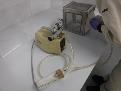 【新型コロナウイルス 噴霧試験】安全キャビネット内で実施します(準備中)