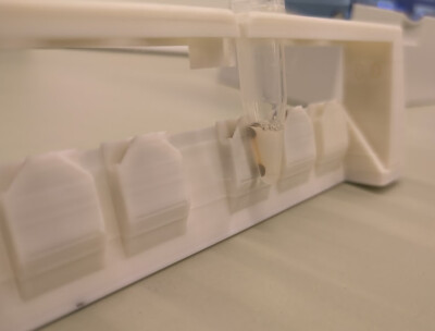 高精度電子ピペット(ザルトリウス製)、独自制御『LabCraft』、3Dプリント製カスタムパーツを組合せ、標準装置では困難なピペッティング作業(特殊容器・液体、微量操作、既存装置連携等)をオーダーメイドで自動化します。