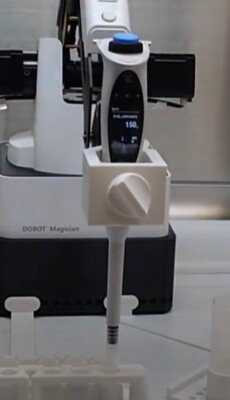 高精度電子ピペット(ザルトリウス製)、独自制御『LabCraft』、3Dプリント製カスタムパーツを組合せ、標準装置では困難なピペッティング作業(特殊容器・液体、微量操作、既存装置連携等)をオーダーメイドで自動化します。