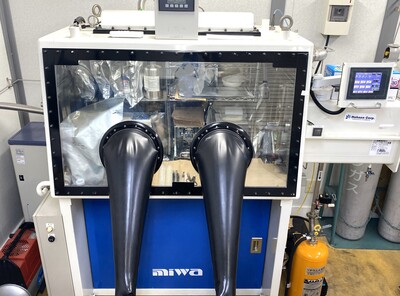 リチウムイオン電池・キャパシタ等の二次電池の試作・実験・評価ができるレンタルラボ。 ガス循環精製装置付きグローブボックス