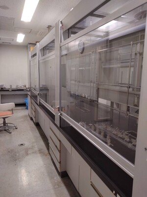 無機材料合成から評価・分析まで幅広い実験に対応したラボです。回転リングディスク電極による試料評価の受託分析も可能です。XPS,XRD,FT-IR,GC,電気炉などの分析、実験装置を多数そろえています。