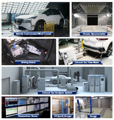 環境型風洞が利用できるレンタルラボです。車やバイクなどの排ガス試験に利用できる、排出ガス分析計やドライバーズエイド、充電装置も完備しています。