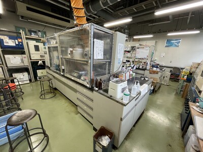 数十人が入ることのできる、広い実験スペースを利用できます。実験台や乾燥機、ドラフト、分光装置、電気炉などを完備しており、幅広い実験、用途に対応できます。占有も可能でイベントスペースとしての利用も可能です。