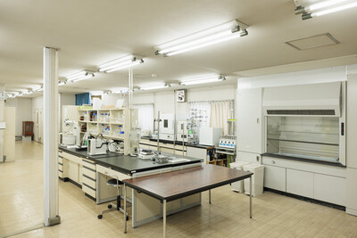 NMR、質量分析、HPLC、GC、FT-IR、ドラフトなどの先端機器を含む実験室を利用できます。オイルバスやエバポレーターもあり、有機合成や高分子合成の実験にも対応しています。
