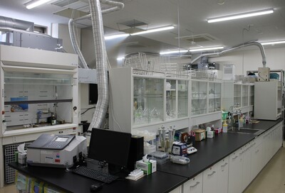 BSL2実験室が利用でき、細胞破砕装置・ホモジナイザー 、PCR、 落射式蛍光読取装置 、電気泳動装置 、等電点電気泳動装置などがそろっています。
