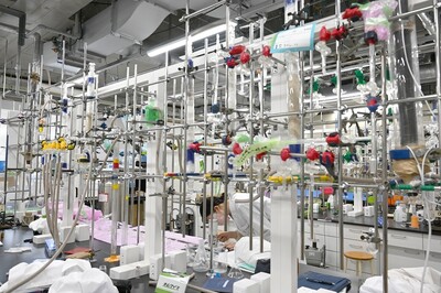 低分子の合成から細胞での活性評価が可能な実験室。化学分析のHPLCや分光光度計や、生化学分析のプレートリーダーなど分析機器も充実。医薬品の候補化合物のスクリーニングや最適化、化粧品や健康食品の細胞評価が可能です。