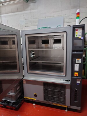 高地での使用や航空機輸送を想定し、製品が受ける減圧環境と温度を加味して再現できる試験装置